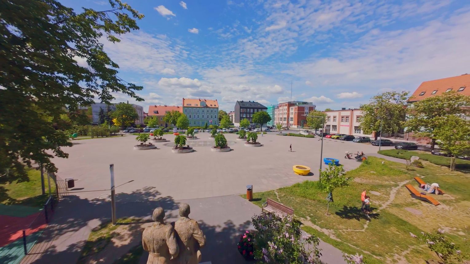 Park przy placu Bohaterów, kiedy wiosna przygotowuje się na powitanie lata, staje się zieloną oazą miejsca gęstej zabudowy budynków mieszkalnych i administracyjnych. Spojrzenie z drona na ten przyczółek zieleni, pozwala lepiej dostrzec jak ważną pełni on rolę.