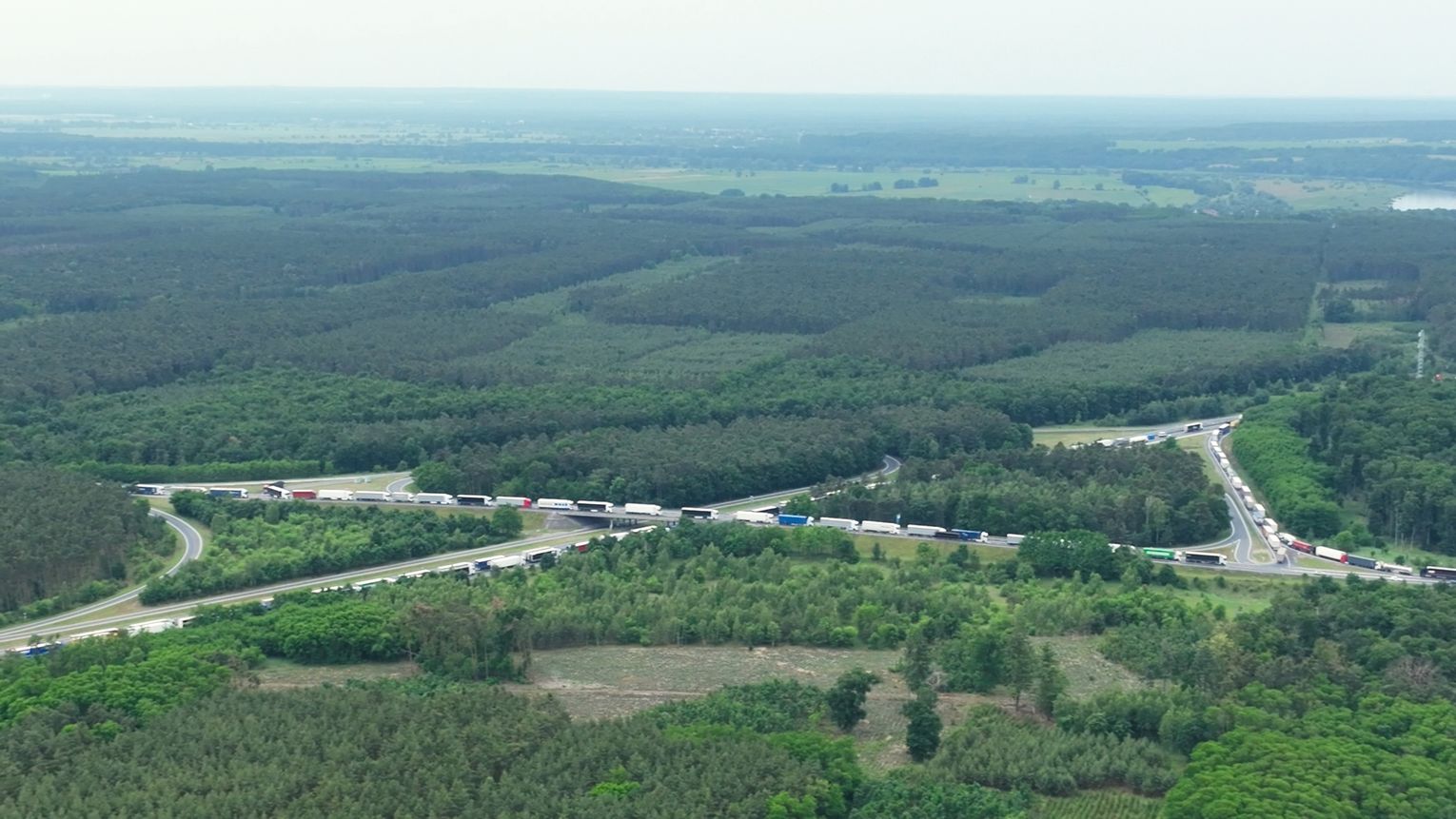 Po długim weekendzie Zielonych Świątek u naszych niemieckich sąsiadów, na drogach powrotnych tworzą się spore korki. Ruch na granicy znacznie wzmożony. Tak wyglądają z lotu ptaka pobliskie drogi, strefa ekonomiczna, a także wyjazd na Zieloną Górę i Berlin.