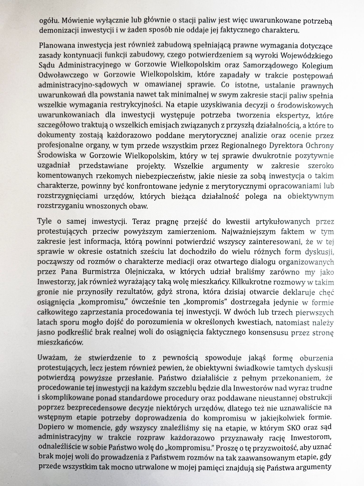 Sprostowanie informacji przedstawionych w materiale filmowym „Protest przeciw planom budowy stacji benzynowej” z 23 marca 2026