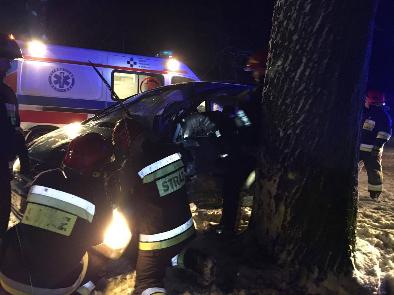 Warunki atmosferyczne nie sprzyjają kierowcom. Tak też było i tym razem. Kierująca samochodem osobowym kobieta wpadła w poślizg i uderzyła w drzewo. Razem z kierującą jechało dwóch pasażerów. Na szczeście nikomu nic się nie stało. Kierująca odniosła ogólne potłuczenia.
