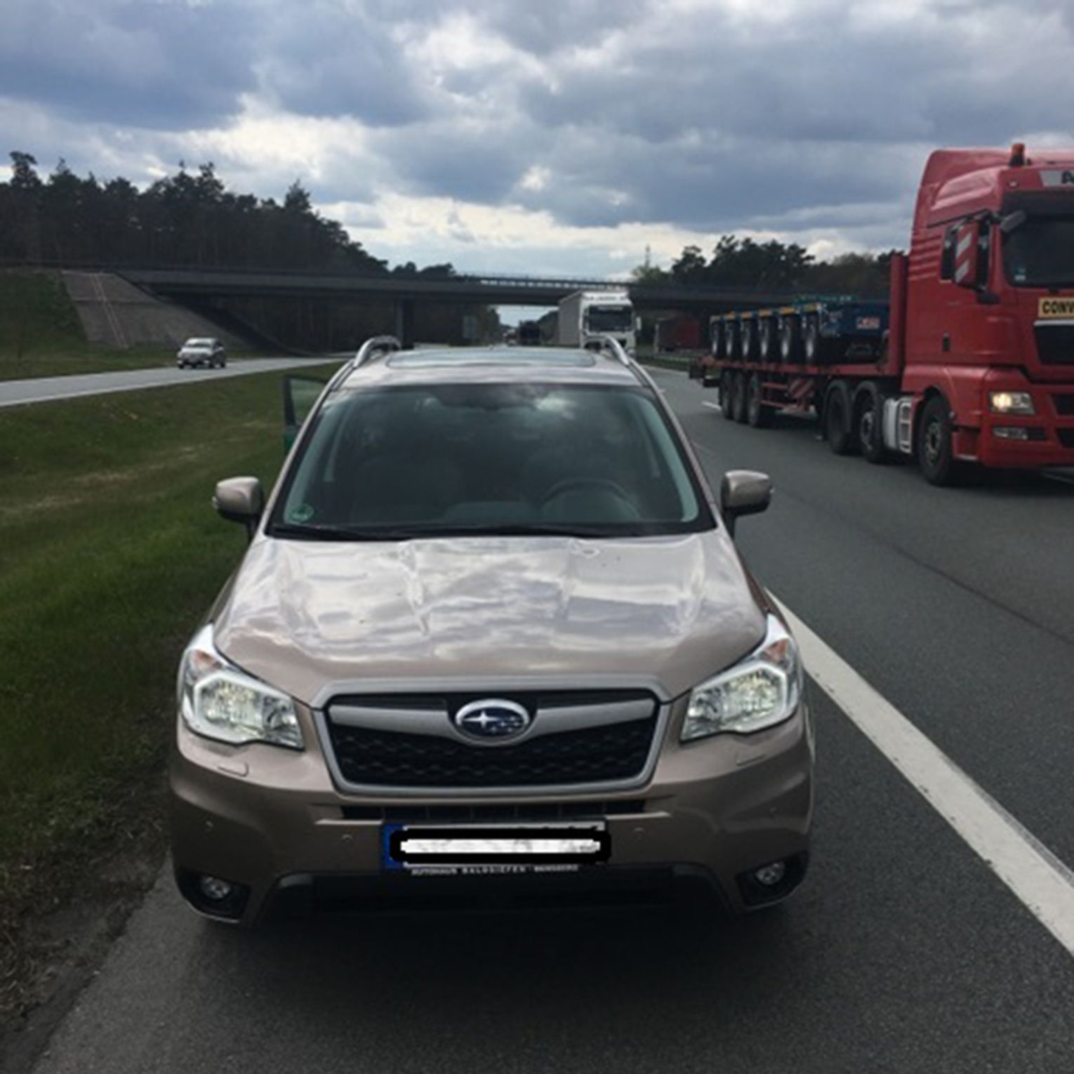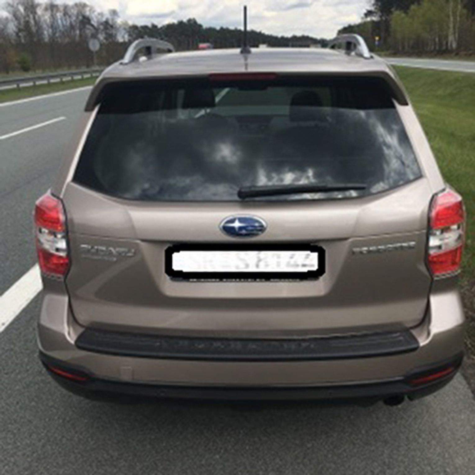 "Wczoraj, tj. 26.04.2017 r. funkcjonariusze z Placówki SG w Świecku, na drodze krajowej nr 2, zatrzymali do kontroli drogowej pojazd marki Subaru, posiadający niemiecki numery rejestracyjne. Kierowca, 57-letni Polak, nie posiadał żadnych dokumentów pojazdu. Podczas trwającej kontroli mężczyzna przyznał się, że pojazd został mu przekazany na terenie Niemiec, aby dojechał nim do Poznania, gdzie miał oczekiwać na dalsze instrukcje. Fakt kradzieży na terytorium Niemiec potwierdził funkcjonariusz BPOl. Natomiast w wyniku dokonanych sprawdzeń ustalono, że zatrzymany mężczyzna poszukiwany jest przez organy ścigania. Wartość szacunkowa skradzionego pojazdu wynosi 100.000 zł. Kierowcę oraz odzyskane auto przekazano funkcjonariuszom z KPP w Słubicach."