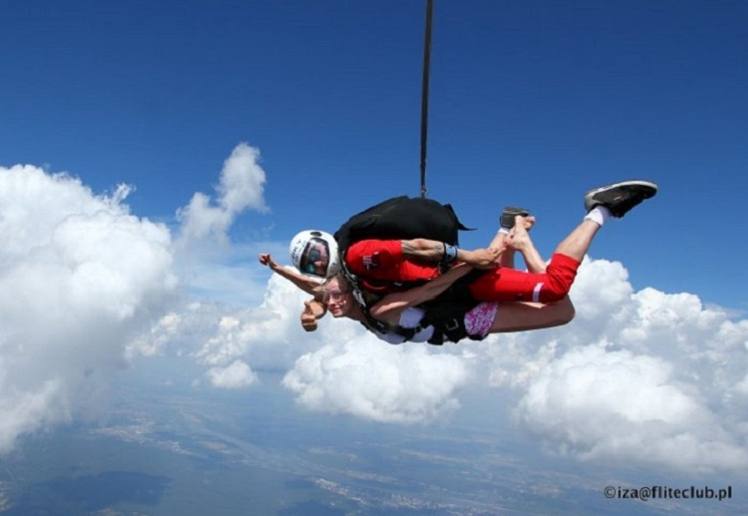 Możemy też wybrać skok tandemowy wraz z usługą wideofilmowania. Wtedy w skoku bierze udział jeszcze jeden skoczek, który ma kamerę zamontowaną na swoim kasku. Rejestruje całe wydarzenie, aby pasażer mógł mieć niesamowitą pamiątkę ze swojego wyczynu. Taka usługa to dodatkowo około 250 złotych, ale warto się na nią zdecydować do pierwszego skoku.
