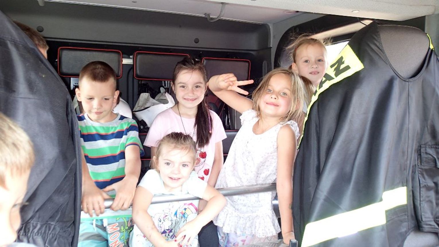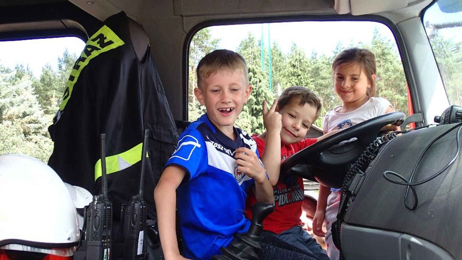 Pierwszy dłuższy postój oraz czas na edukację i zabawę miał miejsce na lądowisku leśnym znajdującym się pomiędzy Rzepinem, a Nowym Młynem. To właśnie tam uczestnicy oprowadzani przez Panią Annę Gandecką z Nadleśnictwa Rzepin zobaczyli bezpośrednio jak działa system monitorowania okolicznych lasów i ich ochrona przeciwpożarowa. Dodatkową atrakcją dla dzieci był pokaz sprzętu pożarniczego i funkcjonowania wozu strażackiego –dzięki Panu Ryszardowi Rybowiakowi każdy chętny mógł też skorzystać z przejażdżki wozem strażackim.