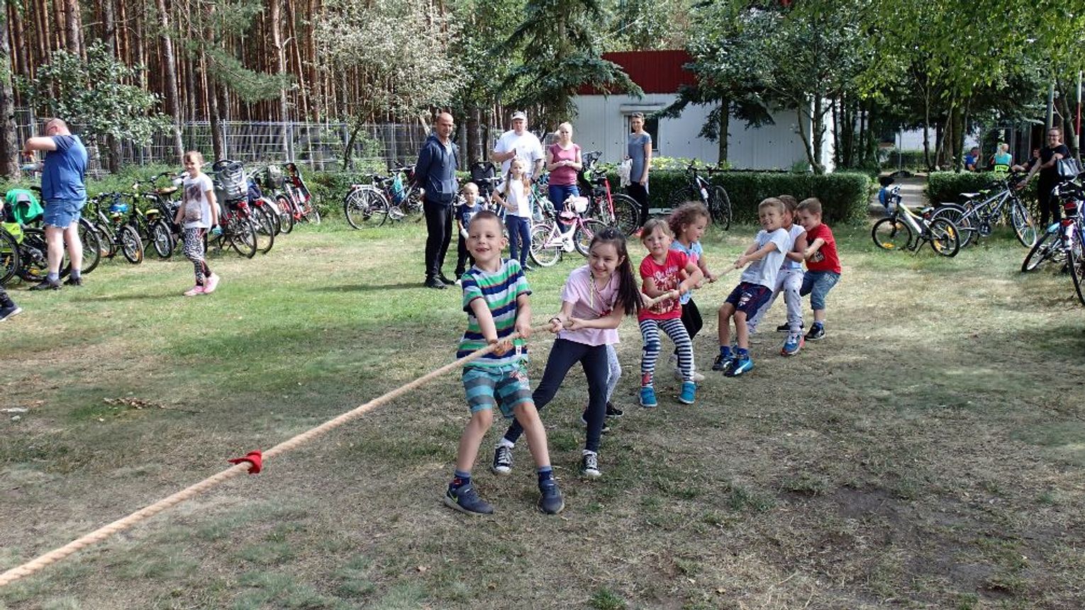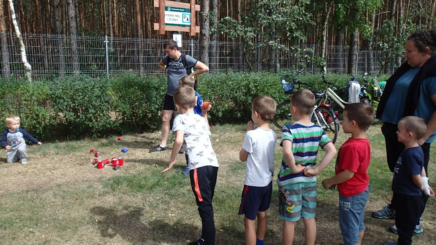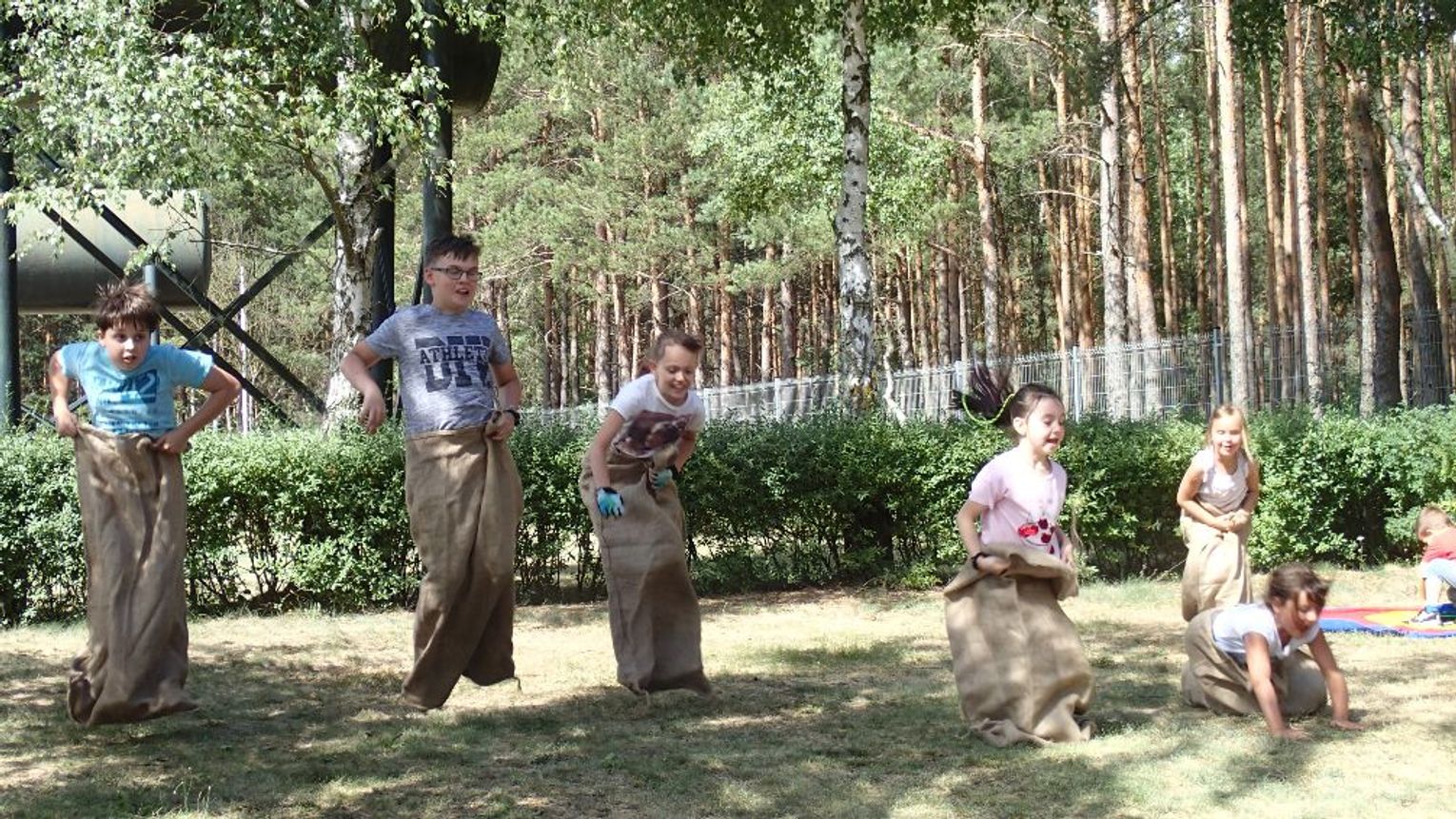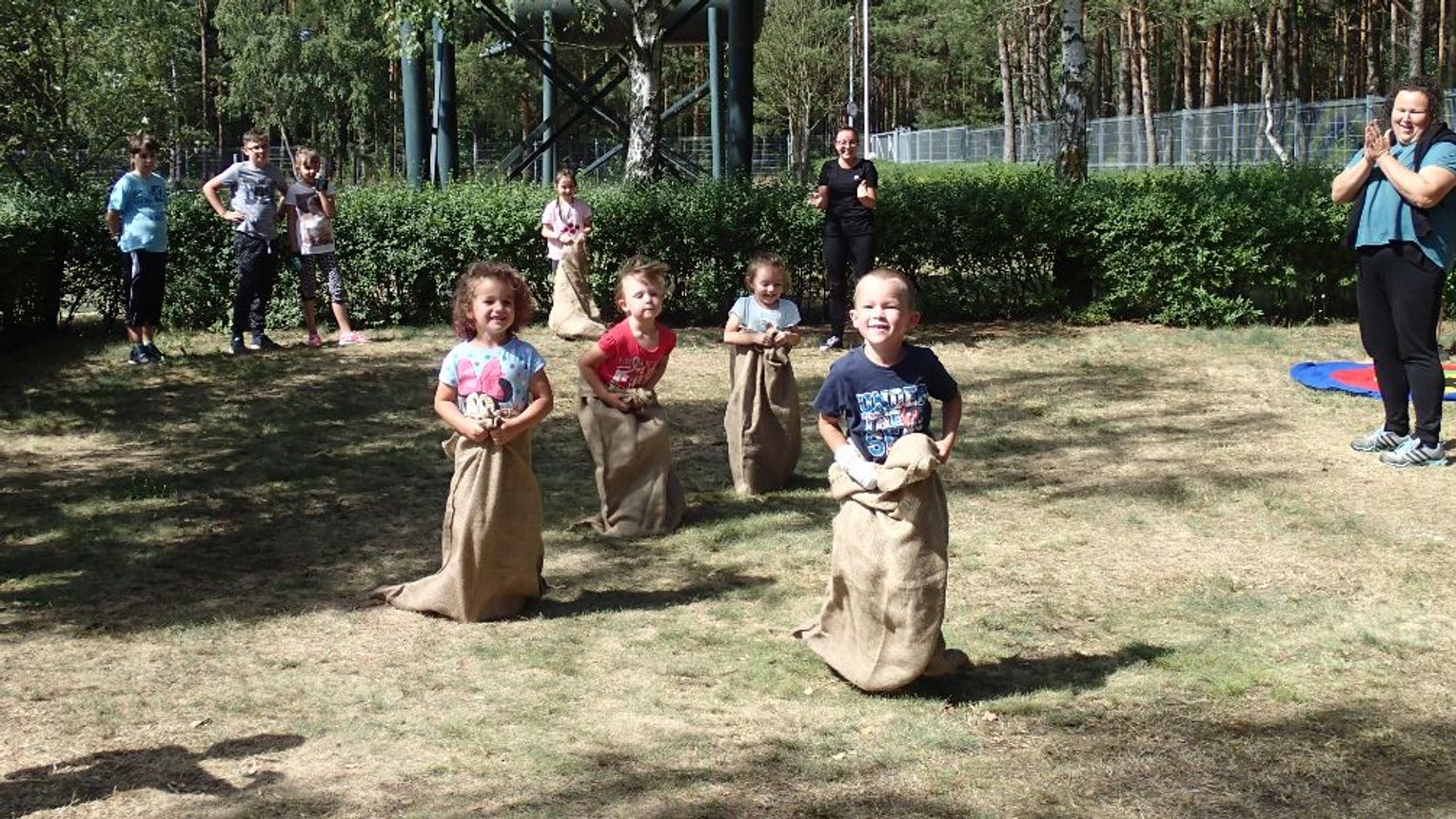 Poza tym serdeczne podziękowania składamy Panu Pilotowi, który opowiedział uczestnikom wyprawy o samolocie „Dromader”, stacjonującym na lądowisku i biorącym udział w akcjach gaśniczych – dzieci mogły także z bliska zobaczyć jak wygląda kabina pilota. Na zakończenie tej części wycieczki na uczestników czekały zajęcia sportowe m.in. bieg w workach, przeciąganie liny czy rzut do celu. Z lądowiska uczestnicy udali się do drugiego ważnego punktu wyprawy tzn. szkółki leśnej w Nowym Młynie.