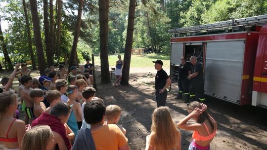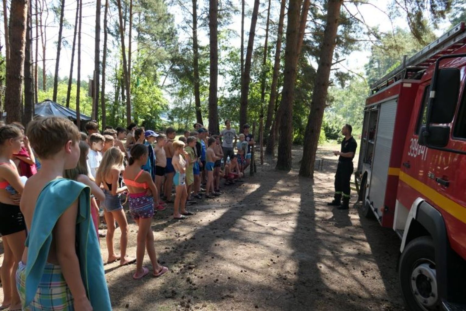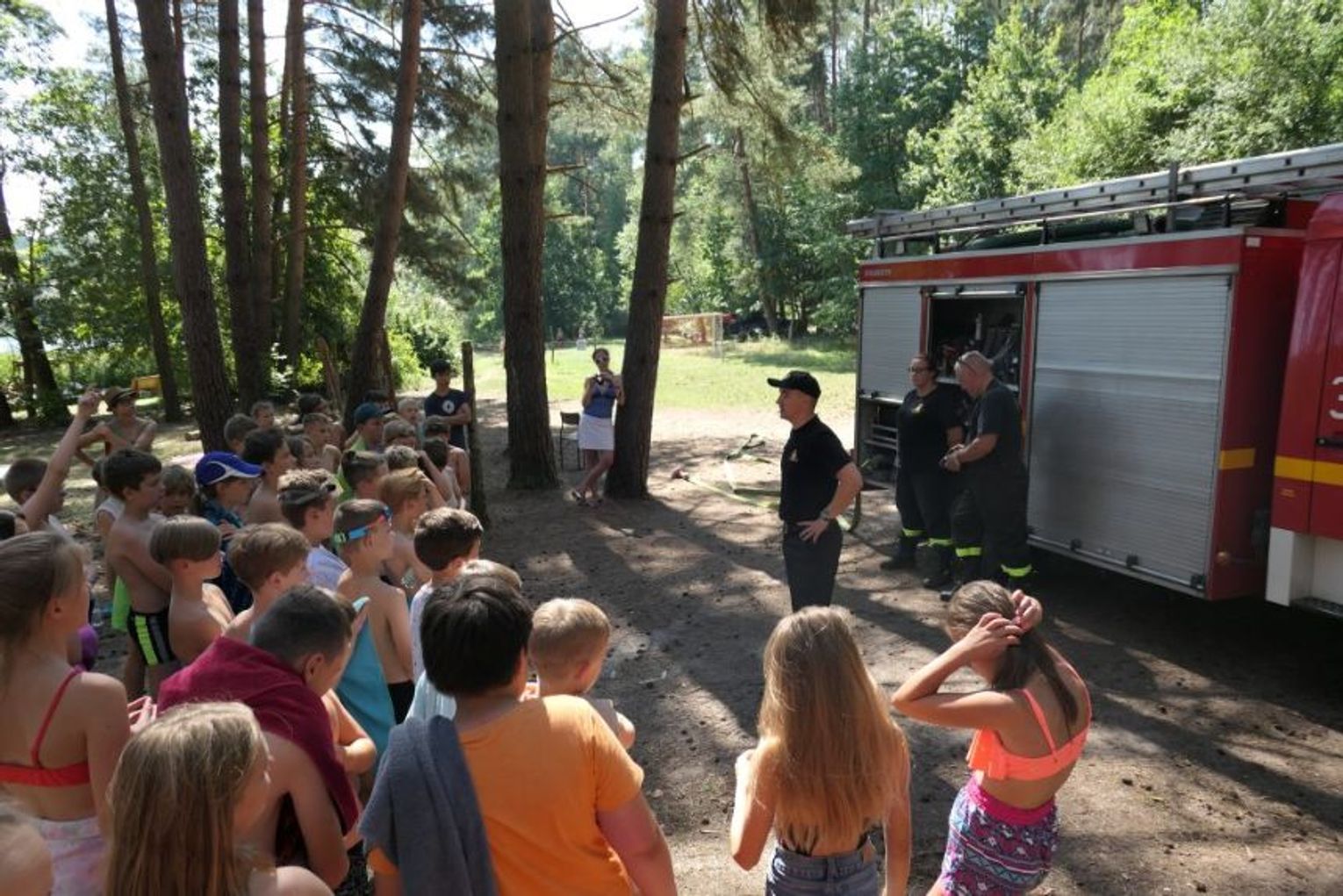 Podczas wizyty na terenie obozu w trakcie trwania drugiego turnusu, druhowie z jednostki OSP w Ośnie Lubuskim zaprezentowali również sprzęt znajdujący się na ich samochodzie ratowniczo – gaśniczym. Na koniec dzieci mogły się schłodzić przy rozstawionej kurtynie wodnej.